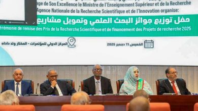 نظّمت الوكالة الوطنية للبحث العلمي والابتكار، اليوم الخميس بقصر المؤتمرات “المختار ولد داداه”، حفلا لتوزيع جوائز النسخة الخامسة من الجائزة…