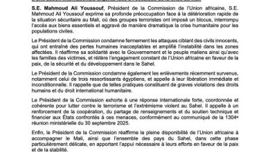 دعا رئيس مفوضية الاتحاد الإفريقي، السيد محمود علي يوسف، إلى تحرك دولي عاجل ومنسق لمواجهة التصعيد الخطير في الأزمة الأمنية…