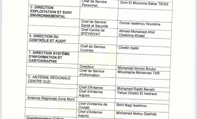 أعلنت الوكالة الوطنية معادن موريتانيا عن إجراء تعيينات جديدة شملت عدداً من الإدارات والمصالح التابعة لها، وذلك في إطار تعزيز الكفاءات وتطوير الأداء المؤسسي.