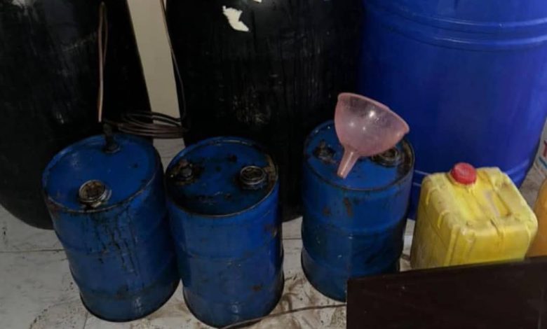 وبعد مراقبة دقيقة للمكان، نفذت المفوضية عملية مداهمة مساء الثلاثاء 18/11/2025، أسفرت عن ضبط كمية تقدر بـ 800 لتر من المشروبات الكحولية، موزعة على براميل مختلفة السعات، إضافة إلى عشرات القنينات الصغيرة الجاهزة للتوزيع، فضلاً عن أدوات ومعدات تُستخدم في عملية التصنيع.