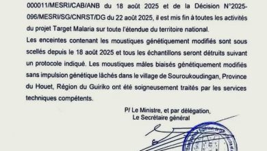 أعلنت وزارة التعليم العالي والبحث والابتكار في بوركينا فاسو، وقف جميع أنشطة مشروع Target Malaria على امتداد التراب الوطني،…