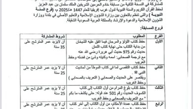 أعلنت وزارة الشؤون الإسلامية والتعليم الأصلي، عن فتح باب الترشح للمشاركة في النسخة الثامنة من مسابقة الملك عبد العزيز الدولية…