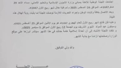 اللجنة الوطنية لمراقبة الأهلة تعلن الإثنين هو أول ايام شهر ربيع الاول 1447