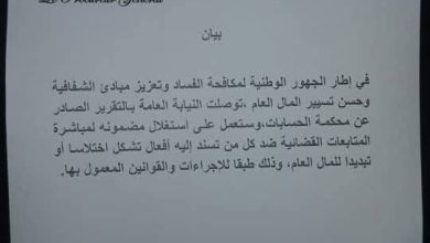 النيابة العامة تعلن مباشرة المتابعات القضائية ضد المتورطين في ملفات الفساد