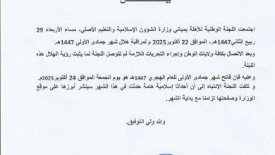اللجنة الوطنية للأهلة: الجمعة أول أيام شهر جمادى الأولى 1447هـ